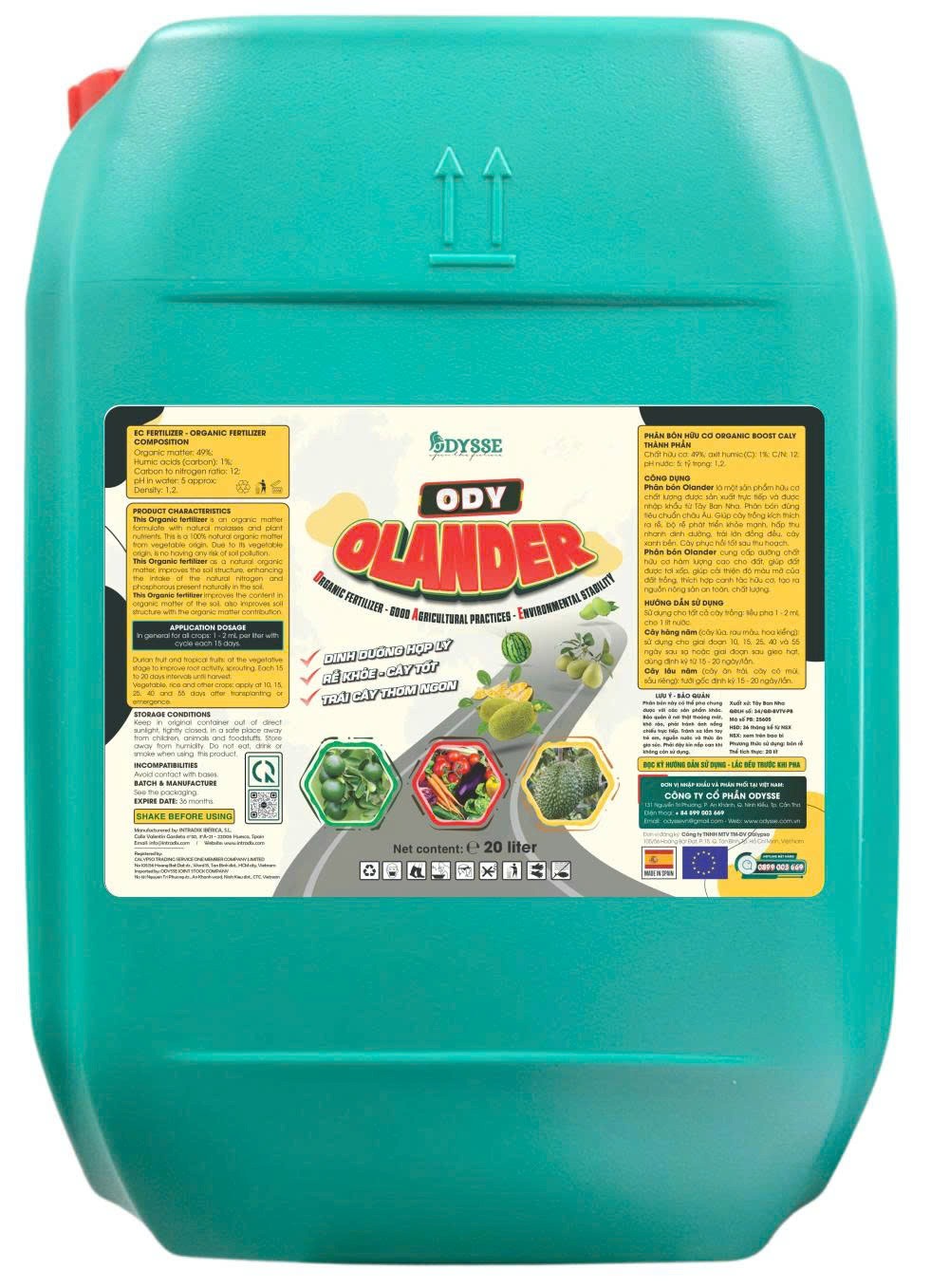 ODY OLANDER là phân bón hữu cơ dạng lỏng cao cấp, phù hợp cho nông nghiệp công nghệ cao, dễ dàng sử dụng trong các hệ thống tưới nhỏ giọt, phun lá hoặc xử lý hạt giống.